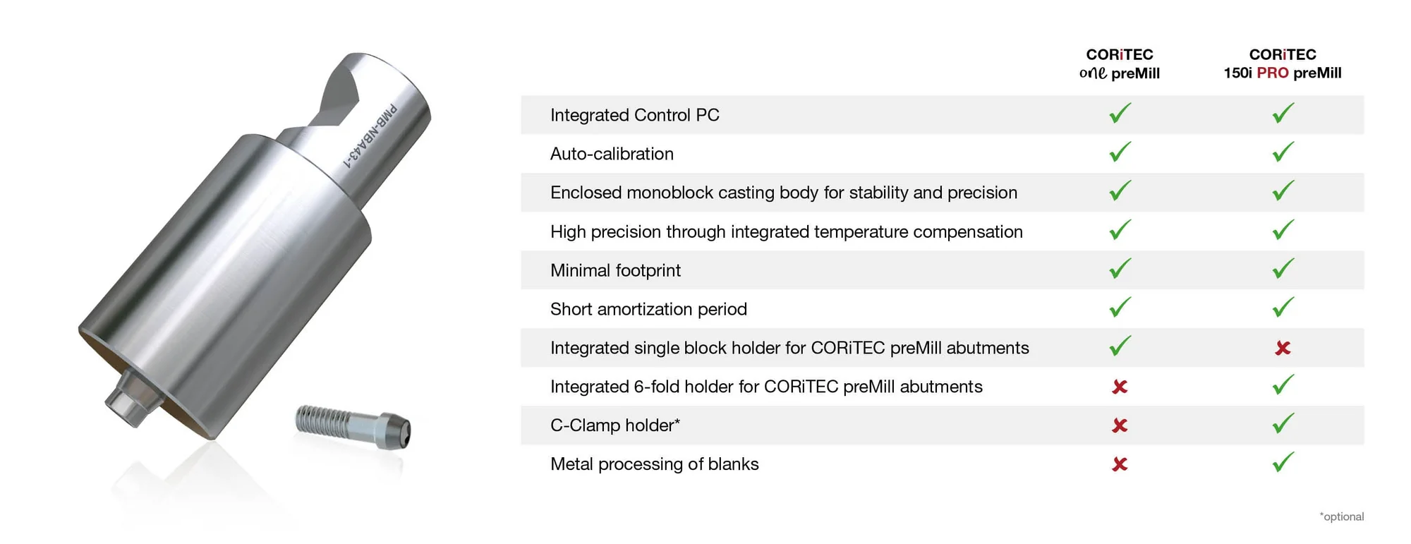 CORiTEC one preMill and CORiTEC 150i PRO preMill both offer: