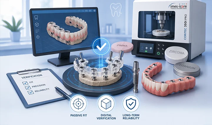 Digitale Arbeitsabläufe haben die Situation erheblich verbessert. Intraorales Scannen, Photogrammetrie, digitale Bissregistrierung, CAD-Design und industrielle CAM-Fertigung ermöglichen es, komplexe Geometrien mit hoher Konsistenz zu reproduzieren. Gleichzeitig zeigt die Literatur, dass „digital“ allein nicht ausreicht. Entscheidend ist, ob jeder Schritt validiert wird. Deshalb sind Prototyp-Anproben, Verifizierungsvorrichtungen und strukturierte Passungskontrollprotokolle nach wie vor von großer Bedeutung, insbesondere bei verschraubten Vollbogenprothesen.