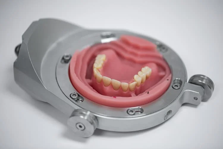 Basierend auf den Rückmeldungen und Anpassungen aus den Anproben wird die Prothese im Labor fertiggestellt. Dabei wird auf eine hohe Ästhetik und Funktionalität geachtet.