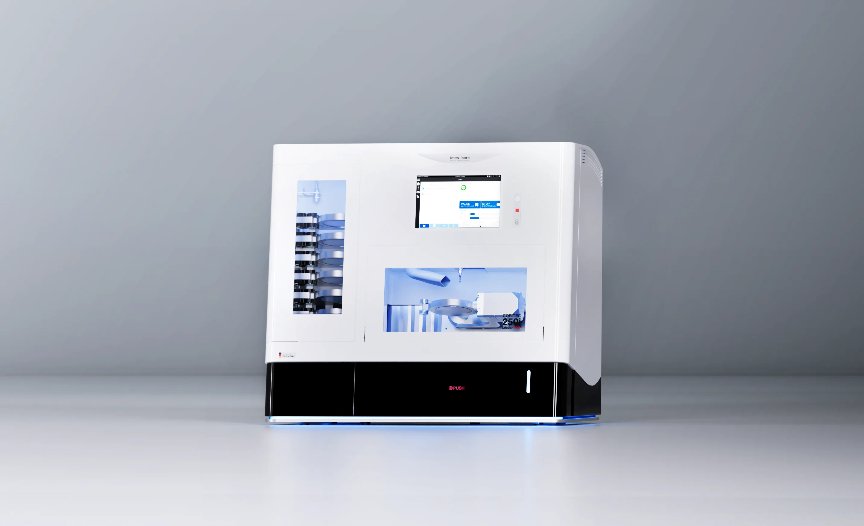 La serie CORiTEC 650i PRO es ideal para centros de fresado con un alto rendimiento y los más altos requisitos de precisión. Estos sistemas están diseñados para un funcionamiento industrial continuo y, además de la fabricación sustractiva clásica, también ofrecen mecanizado híbrido y torneado-fresado, ideales para la fabricación precisa de pilares, componentes de implantes y geometrías complejas.