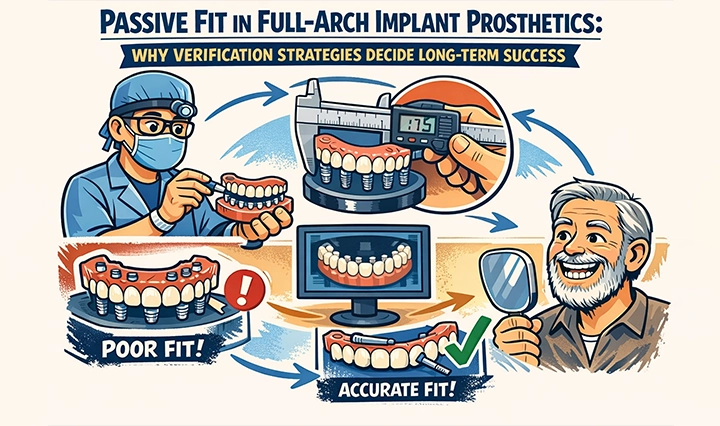 Malgré ses avantages, l'ajustement passif reste un défi, car il dépend de l'ensemble de la chaîne, et non d'un seul composant d'excellente qualité. Les imprécisions de numérisation, les mouvements des tissus mous, un mauvais positionnement du corps de numérisation, les erreurs de conversion des données, la déformation du modèle ou les écarts de traitement spécifiques au matériau peuvent tous compromettre le résultat final. Les cas d'arcade complète sont particulièrement sensibles, car les erreurs peuvent s'accumuler sur toute l'arcade.